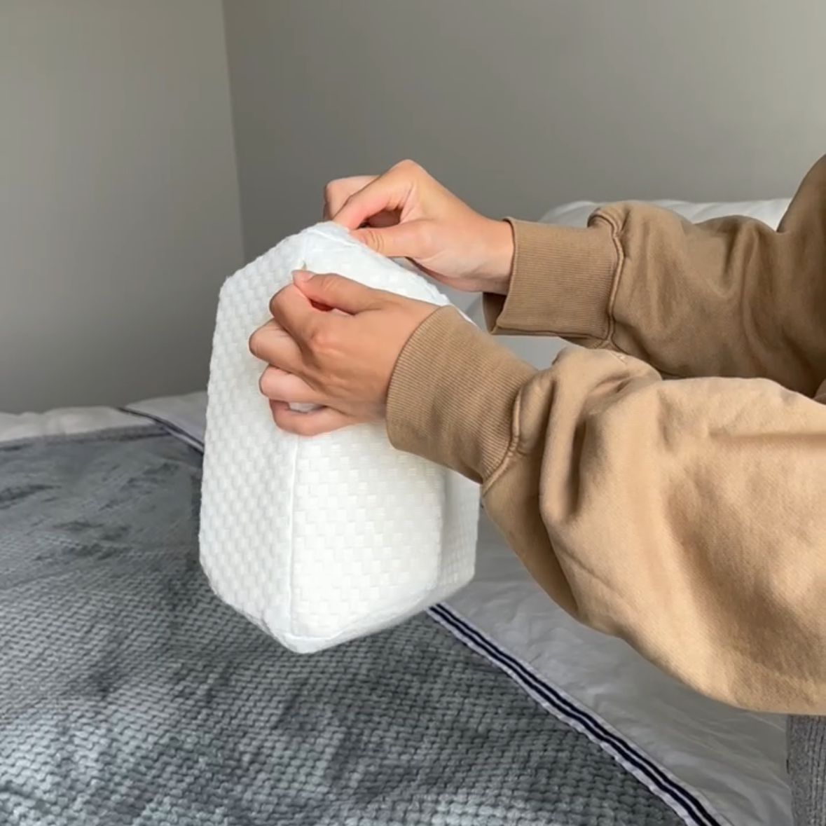 The contoured shape of the Knee Dream Pillow is specially crafted to fit seamlessly between your knees, ensuring proper alignment of your spine, hips, and legs. Tailored for side sleepers, pregnant women, and individuals looking to enhance their sleep routine, this pillow is your secret to a well-supported night's rest.